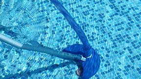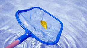 Either vacuuming the pool, leaf scooping the pool, or possibly both.